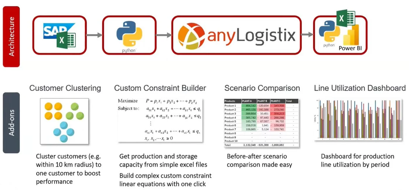 Changes to the supply network can save costs and improve service. But how do you achieve this? In a presentation by Till Fechteler from SimPlan AG, the speaker described the company's approach to supply chain design and optimization projects. Till explained how to use anyLogistix and the steps to take in order to get the best results. The presentation also covered the use of anyLogistix to optimize supply networks in the building materials industry, with a detailed example.