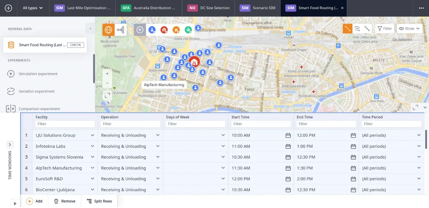 In this blog post, we’ll explore how smart food routing and the new last-mile optimization experiment in anyLogistix can help you optimize your food delivery operations. We’ll also walk you through a step-by-step example so you can see exactly how to set up, run, and analyze optimized delivery operations in practice.