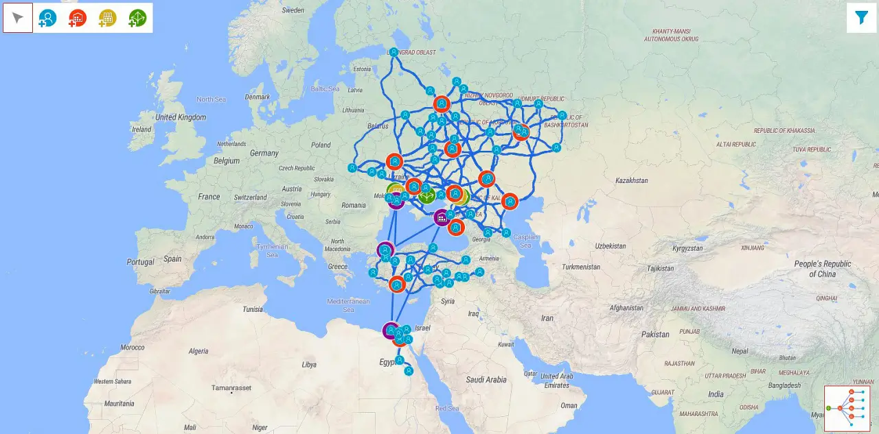 Network design: a supply chain’s on-map view and its network’s structure (click to enlarge)
